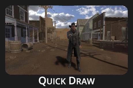 Cody the Cowboy is ready to challenge anyone to a duel. The settings allow you to choose the distance, difficulty mode, and other options. The principle is simple: the duel runs in rounds. Watch Cody closely—when he starts raising his gun, it's time to draw and shoot. If Cody is hit before he raises his gun, he loses the round and falls. With each round, his reaction time improves by fractions of a second. The drill ends when Cody raises his arm before he's hit.