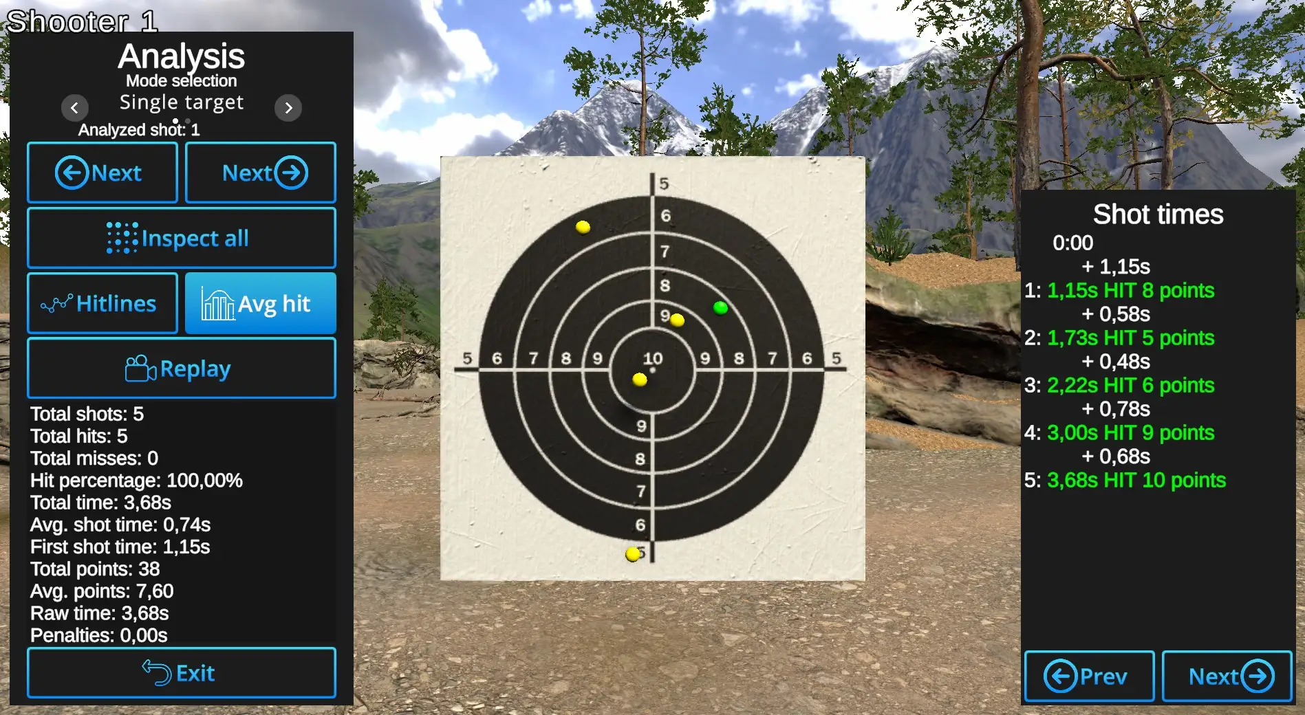 ON – The system automatically runs the analysis after completing each drill—except for the Shooting Range, where basic shot information is always displayed in the upper right corner, and deeper analyses can be initiated manually using the 'Analysis' button.